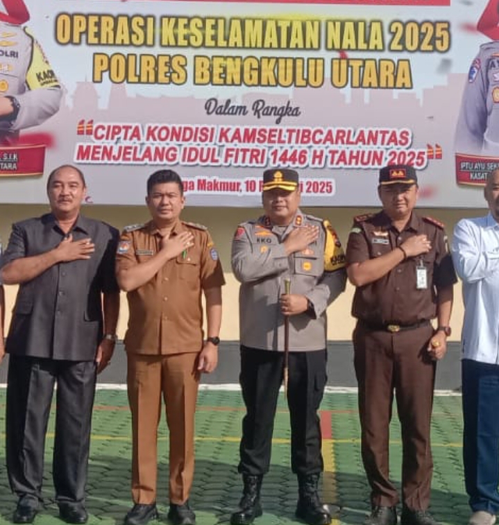 Apel ini dihadiri oleh berbagai pejabat penting, termasuk Waka Polres Bengkulu Utara, Kasi Ops, Dandim 0423 Bengkulu Utara, Kepala Cabang Jasa Raharja Bengkulu Utara, para Kepala Dinas Bengkulu Utara, Dishub Bengkulu Utara, Sat Pol PP Bengkulu Utara dan para pejabat utama Polres Bengkulu Utara. ***