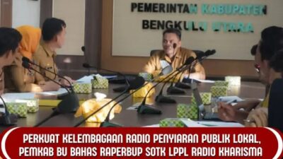 RZAPUBLIK.COM – Pemerintah Kabupaten Bengkulu Utara melalui Dinas Komunikasi dan Informatika Kabupaten Bengkulu Utara bersama sejumlah SKPD terkait menggelar rapat pembahasan Perbup tentang Susunan Organisasi dan Tata Kerja Lembaga Penyiaran Publik Lokal (LPPL) Radio Kharisma Ratu Samban.