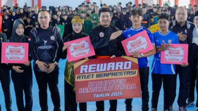 RZAPUBLIK.COM – Pemerintah Kabupaten Bengkulu Utara memberikan apresiasi langsung kepada atlet berprestasi dalam bentuk reward. Pemberian penghargaan ini dilakukan oleh Bupati Bengkulu Utara secara simbolis pada acara pembukaan Kejuaraan Pencak Silat Adhyaksa Cup, Kamis (18/12/2025), di Gedung Serba Guna Sahri Romli, Kecamatan Arga Makmur.